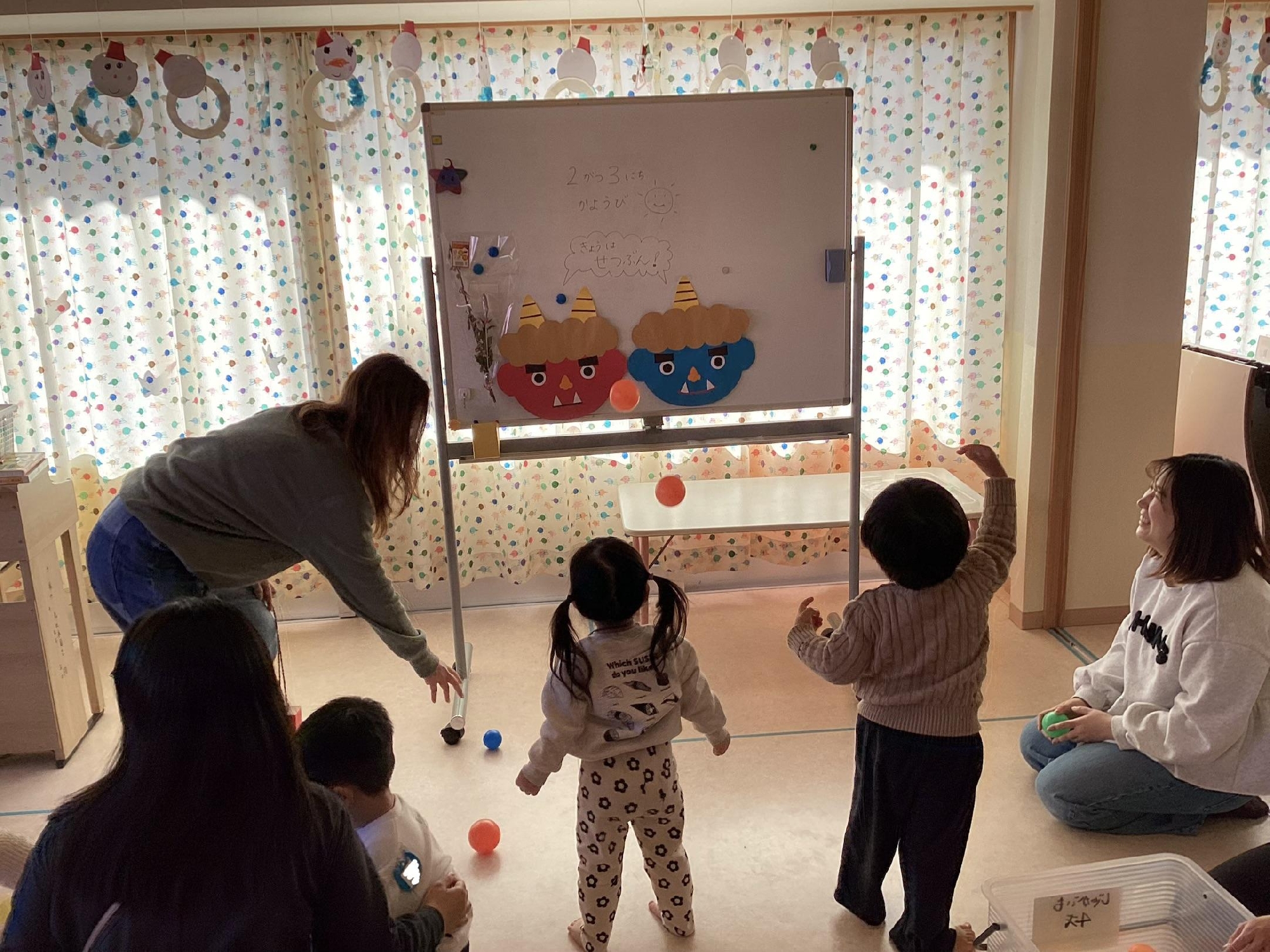 豆枡完成の後は鬼退治の練習にボール投げをしました⚾️